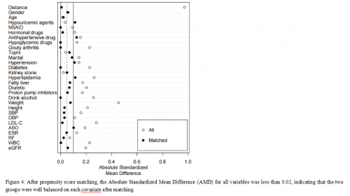 Figure4为匹配后所有变量的标准化均值分布,差异均小于0.02,表明MetS组与非MetS组在各项基线特征上达到统计学的良好平衡,有效控制了混杂偏倚,极大地增强了本研究结论的可靠性。