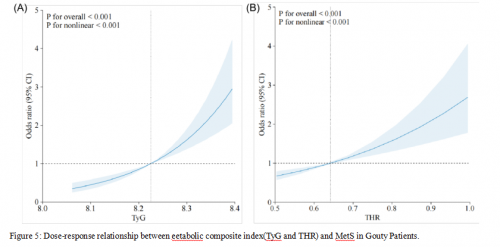 Figure5利用限制性立方样条模型,揭示了TyG和THR与MetS风险之间存在稳定的非线性正相关关系——即随着指标数值的升高,MetS的发生风险持续显著上升,为临床进行动态风险评估和精准干预提供了关键的量化依据。