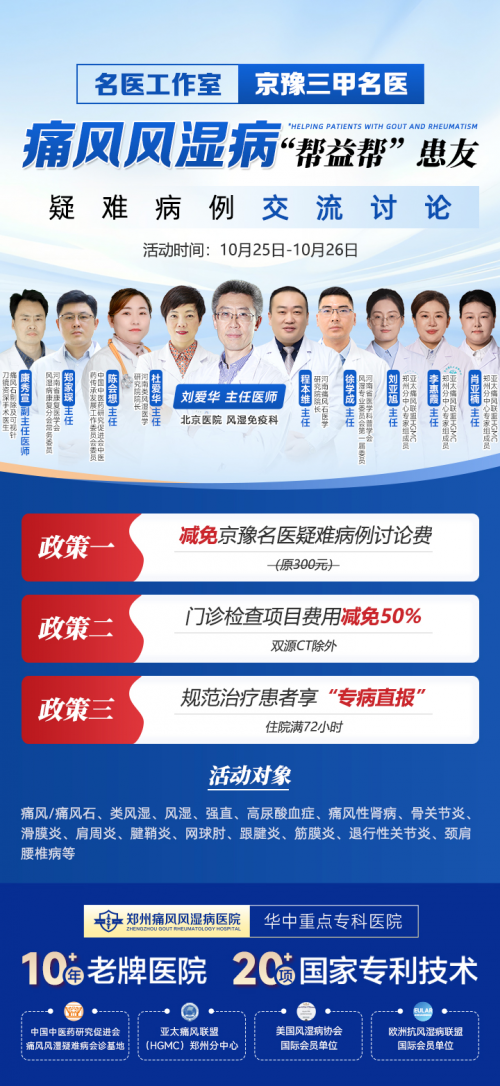 - 郑州痛风风湿病医院名医工作室|京豫三甲名医痛风风湿病“帮益帮”患友疑难病例交流讨论2025-10-20