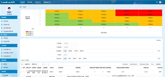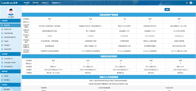 蓝凌智能合规风控管理平台通过“风险准则标准化、风险库精细化、风险采集流程化”,让风险可识别、可评估、可追溯。