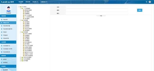 风险库是风险信息的集中仓库。智能合规风控管理平台支持按组织业务模块进行多级分类,既便于快速定位风险所属领域,也为后续精准管控奠定基础。