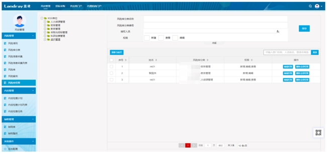 同时,风险库支持精细化权限分配,按分类目录为不同用户授权“新增、查看、编辑”权限,确保风险数据安全可控。
