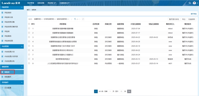 内控的核心是落地执行,蓝凌智能合规风控管理平台通过“检查计划 - 任务执行 - 缺陷整改”的全流程设计,确保内控要求不流于形式,实现从发现问题到解决问题,再到验证效果的完整闭环。