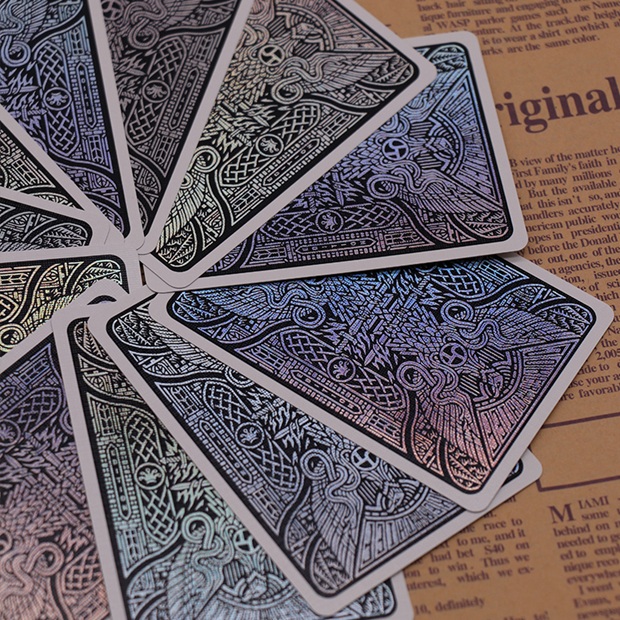 1. 全工艺覆盖能力 - 基础工艺涵盖胶印、丝印、CMYK四色印刷等,支持单色简约设计到双面全彩呈现的灵活切换,适配广告扑克、盲盒卡等基础需求。 - 特殊工艺包括烫金、UV、镭射、光栅、激凸、折光等,其中高温烫金工艺可实现0.1毫米精细线条,还能通过全息技术打造动态光影效果,光栅工艺借助视差特性呈现多维图案。