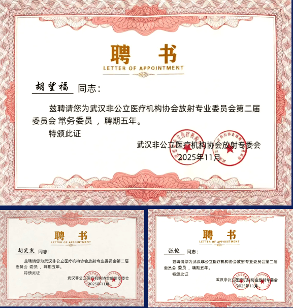 11月,高尚健康集团武汉中心受邀参加2025湖北省医学会放射性分会学术年会、湖北省放射医学质控大会、《临床放射学杂志》等学术会议,并有3位专家分别受聘为武汉非公立医疗机构协会放射专业委员会第二届委员会常务委员及委员,体现了专业影响力。同时,武汉中心核医学新药项目“PSMA”通过医学伦理委员会进入科研合作,标志着集团在精准诊疗的科研转化与临床前沿应用上迈出了关键一步。