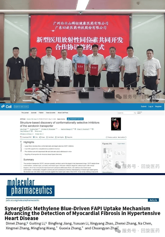 集团坚持“自主研发与开放合作”双轮驱动,致力于打造从基础研究到临床应用的完整价值链。2025年9月,广东回旋医药与广州白云山稀核健康医药有限公司签署战略协议,共同推进新型医用放射性同位素的开发,强化了在关键原料领域的布局与保障。同时,核药科技板块深度参与全球前沿探索,由回旋医药提供技术支持的科研成果年内相继发表于 《Cell》与《Molecular Pharmaceutics》 等顶级期刊,涉及五羟色胺转运体抑制剂、基于亚甲蓝(MB)协同效应的FAPI靶向摄取新机制在高血压性心脏病(HHD)心肌纤维化诊断中的应用等方向,积累了深厚的早期研发资产。