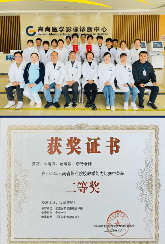 3月,高尚健康集团昆明中心接收了来自云南医药健康职业学院等院校的共13名医学影像技术专业学生,完成为期8个月的临床实习并圆满结业。其中昆明中心影像医师李玲与学院教师黄巧、朱春萍、赵若辰组成联合教学团队构建的方案获得2025年云南省职业院校教学能力比赛的二等奖。