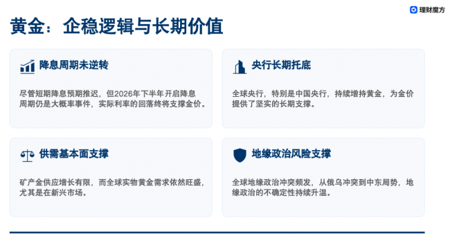 黄金:等待企稳后长期定投,不赌单边行情,坚守避险配置定位;