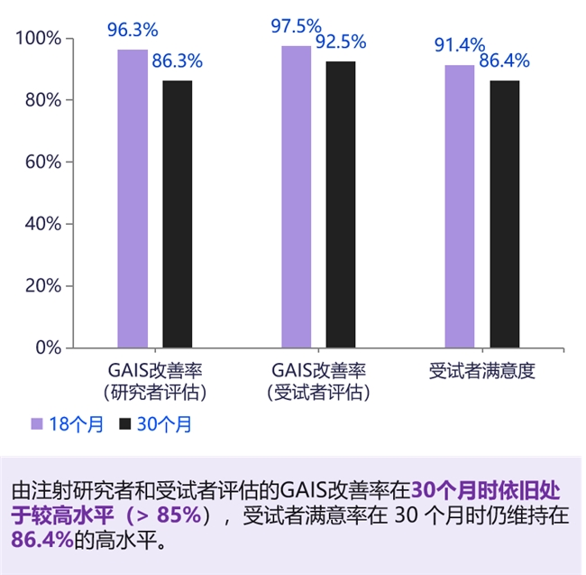 安全性层面,18个月时器械相关不良事件发生率为5.7%,多为轻度注射相关反应,均可自行缓解[3];在18至30个月延长随访期内,器械相关不良事件及注射部位局部反应均为0例,以临床实证兑现了卓越安心的安全承诺。[5]